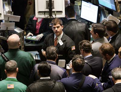 1月3日,人们在美国纽约证券交易所进行交易。当天是纽约股市2007年开市第一天。纽约股市三大股指2006年全年均有不同程度的上涨,其中,道琼斯指数全年涨幅超过16%。继去年10月19日突破12000点大关之后,道琼斯指数又在12月28日创下了12529.88点的盘中历史新高。