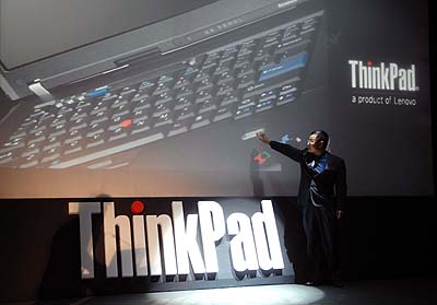 1月16日,联想中国区Think业务部工作人员在发布会上启动产品亮相仪式。当天,联想集团中国区宣布推出一款宽屏ThinkPadT60笔记本电脑,这是联想集团收购IBM个人电脑业务后,推出的又一款高端宽屏笔记本电脑,主要面向高端商务笔记本电脑市场。