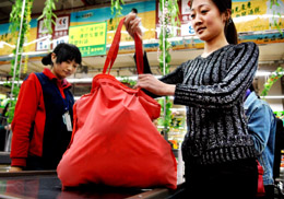 近日,银川市环保部门与部分超市联手发起了“清除‘白色垃圾’环保购物进超市”有奖购物活动。顾客购物时若不使用超市提供的塑料袋将少收取0.1元。推广这一象征意义的“奖励”措施,旨在唤起市民遏制“白色垃圾”。