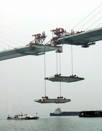 苏通大桥最后一对钢箱梁顺利吊装就位