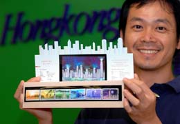 6月11日,邮票设计者刘绍增在展示“香港特别行政区成立十周年”纪念邮票。为庆祝香港特别行政区成立十周年,香港邮政将于7月1日发行“香港特别行政区成立十周年”纪念邮票。这套纪念邮票由六枚邮票和一款邮票小型张组成。
