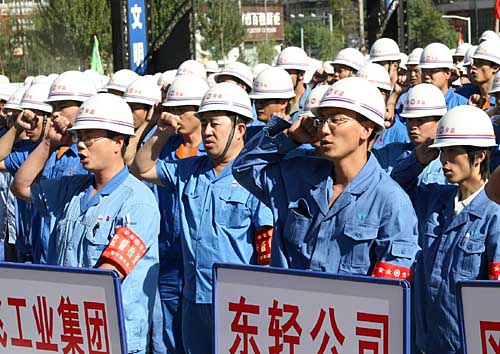 8月30日,300名安全生产监督检查员代表在哈尔滨市总工会安全生产监督检查员上岗启动仪式上宣誓。 当日,哈尔滨市一万名工会安全生产监督检查员上岗。他们将在全市各工业企业的生产车间、建筑安装企业的施工现场、易燃易爆作业场所以及重点要害和有职业危害的岗位,进行安全生产监督检查。