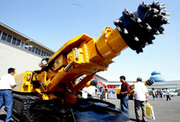 9月4日,人们在展会上参观掘进机。
