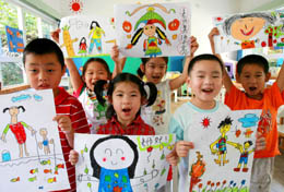9月8日,几名苏州教育幼儿园大班的孩子展示自己创作的绘画。