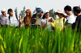9月17日,在国家粮食丰产科技工程项目高产试验田南昌县广福基地,培训班学员认真学习并记录水稻栽培技术。“东盟国家水稻高产高效栽培与高产制种技术培训班”9月12日在江西南昌开班。来自菲律宾、越南、马来西亚、印度尼西亚、文莱、缅甸、老挝的农业技术官员和专家将接受中国水稻育种专家为期两周的水稻栽培技术培训。