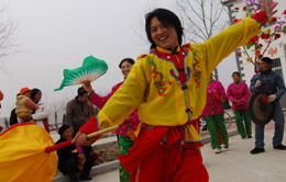 安徽省凤阳县赵庄村的农民在表演“东方芭蕾”花鼓灯。