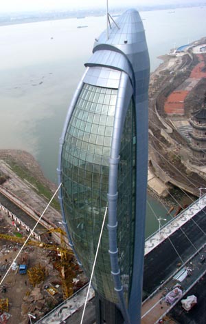 安徽芜湖临江大桥鱼形主塔工程完工