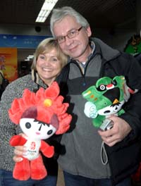 1月1日,2008中国奥运旅游年正式启动,来自德国的234名游客成为2008年北京入境的第一批旅游者。一对来自德国的游客抱着刚得到的新年礼物“福娃”开心不已。