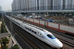 1月6日,一辆“和谐号”列车从京沪铁路线上驶过。 2008年1月5日,铁道部下属的铁道工程交易中心公布总价达837亿元的京沪高铁土建工程由中国中铁、中铁建设集团有限公司等六家公司承建。据介绍,京沪高速铁路工程预计将在春节前开工。