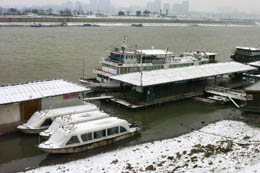 冰雪覆盖下的长沙旅游客运码头(1月15日摄)。