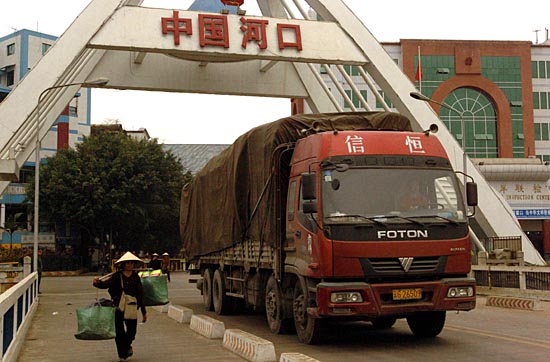 1月21日,一辆中国货车从中越公路大桥驶往越南。