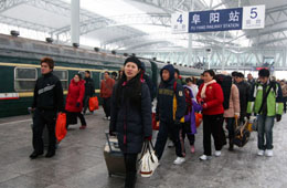 1月28日,旅客从阜阳火车站新建成的无站台柱风雨棚下出站。当日,历时6个月的安徽阜阳火车站扩能改造工程全面竣工,并正式开通启用。阜阳火车站是京九铁路的重要枢纽,又是全国铁路春运重点车站之一。