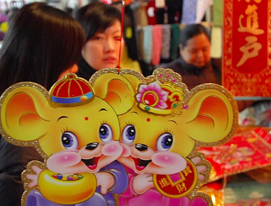 一年一度的新春佳节即将来临,南昌各批发市场和小商品市场上,各种灯笼、年画、剪纸等传统年货受到市民的欢迎。图为市民在南昌市万寿宫购物商场选购年画。