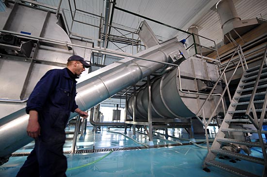 3月16日,一名荷兰籍技术人员从生产线旁走过。当日,由荷兰考森·爱味客集团与甘肃省张掖市民乐县合作投资建设的甘肃最大马铃薯全粉加工项目投产。该项目占地920亩,采用目前国际上最先进的马铃薯全粉生产设备,引进荷兰考森·爱味客集团全新的工艺技术和管理方式,依托考森·爱味客集团健全的销售网络和客户资源。项目设计生产能力为年产1.5万吨马铃薯全粉,建成达标后,可加工马铃薯原料8万吨。