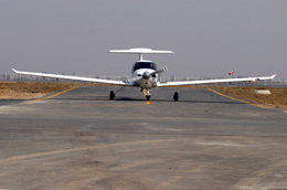 3月25日,一架DA40型飞机在跑道滑行。