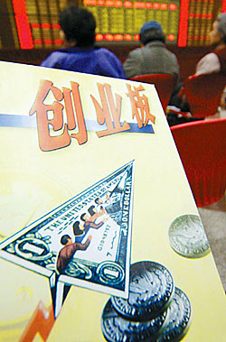 图为北京某证券公司交易大厅里关于创业板市场的宣传。南山