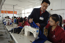 4月16日,安徽省六安市金安区培训基地的老师在向青年农民传授缝纫技能。记者近日从安徽省农业委员会获悉,该省从2004年实施对农村农村劳动力转移培训的“阳光工程”以来,已累计培训农民104万人,培训转移率达90%以上。2008年,该省将进一步加强“阳光工程”培训,力争培训30万农民,同时提高受培训农民的补助标准。