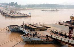 6月22日,工作人员拆除黄河济南段泺口浮桥。黄河第七次调水调沙的水头即将进入黄河济南段。为确保行洪畅通,按照统一部署,济南段上的21座浮桥于22日被全部拆除。