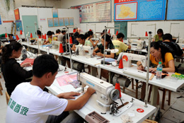 7月1日,在四川省彭州市一所职业技能培训学校,来自彭州灾区的学员们在学习电动缝纫。为解决灾区群众的就业问题,彭州市就业局与当地培训学校联合开办免费电动缝纫技术培训班,并对学习期满后合格的学员进行就业安置。