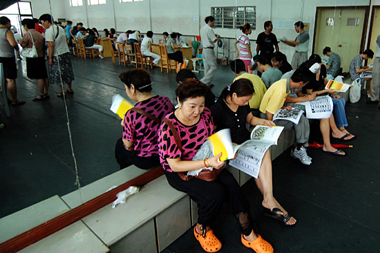 7月31日,在经济适用房签约大厅,许多购房者在安静等待。日前,杭州市开始进行2008年度首次经济适用房公开选房,引起了许多购房市民的强烈关注。据悉,本次经济适用房选房共推出房源4463套,总住宅建筑面积约为38万平方米。