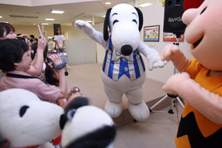 11日,在日本东京银座三越百货店,“史努比”为观众表演舞蹈。一年一度的“史努比在银座”特展近日如期在这里开幕,“史努比”和它的好伙伴们轮番登台表演,吸引了众多“粉丝”。