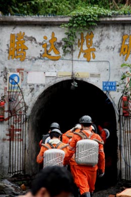 云南彝良煤矿瓦斯爆炸事故导致5人死亡。9月10日,救援队伍下井搜救被困人员。新华社发(张广玉 摄)