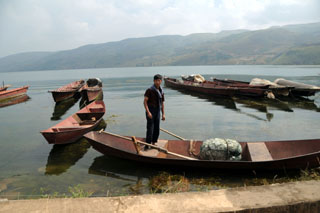 9月20日,阳宗海周边的渔民收拾捕鱼工具。作为云南九大湖泊之一的阳宗海,近期出现了砷浓度超标的污染现象,云南省政府立即在阳宗海全面实施“三禁”,即禁止饮用阳宗海的水,禁止用阳宗海的水游泳和洗浴,禁止捕捞阳宗海的水产品。