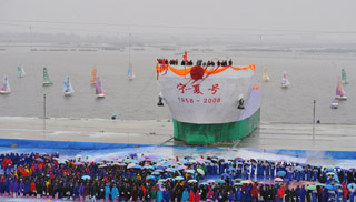 9月23日,群众参加银川阅海湖旁的庆祝大会。
