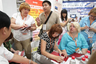 9月23日,各国采购商在上海举行的国际跨国采购大会上洽谈。