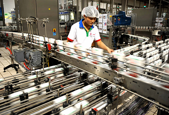 9月25日,伊利金川液态奶生产线正在生产。自“问题奶”事件以来,内蒙古在坚决打击非法收售原奶、派质检人员驻企业监督生产的同时,又于9月24日决定从主席预备金中拿出1亿元资金,重点支持伊利、蒙牛两家企业生产。