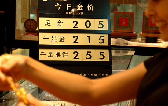 近日,受国际黄金期货价格下跌的影响,海口市黄金饰品价格出现大幅下降。海口的千足金黄金饰品价格已经跌至今年最低点——215元/克,比最高时298元/克下降了27.9%。