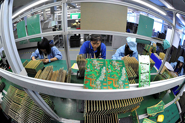 11月17日,工人在位于佛山顺德的瑞德电子集团车间中工作。