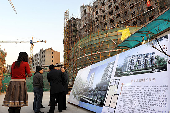 市民在建设中的社会保障房建筑工地参观(11月20日摄)。