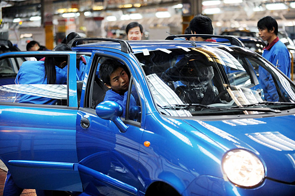 记者从奇瑞汽车股份有限公司获悉,今年前10个月,奇瑞QQ销量已经突破10万辆,是今年首个登上10万辆级别的微轿品牌。奇瑞公司预测,成品油税费改革实行后,具有节能优势的奇瑞QQ销售将会“逆市飘红”,年销量预计突破12万辆。图为工人在奇瑞公司总装二车间对即将下线的QQ轿车进行最后的检测。