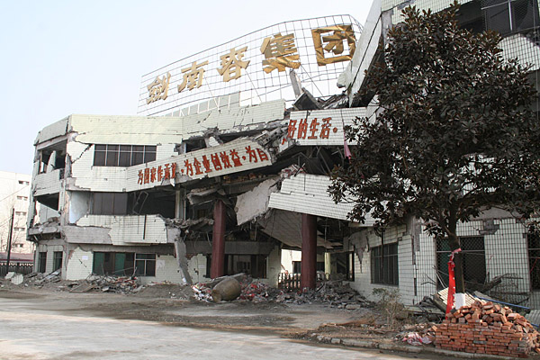 在汶川大地震中,剑南春酒厂遭受重创,直接经济损失近10亿元人民币。受灾后,企业全体员工积极开展生产自救。目前,剑南春酒厂酿酒能力已全面恢复,灌装能力已恢复到原先的六成。据悉,剑南春集团计划用两年时间达到并超过地震前市场供应和销售收入水平。