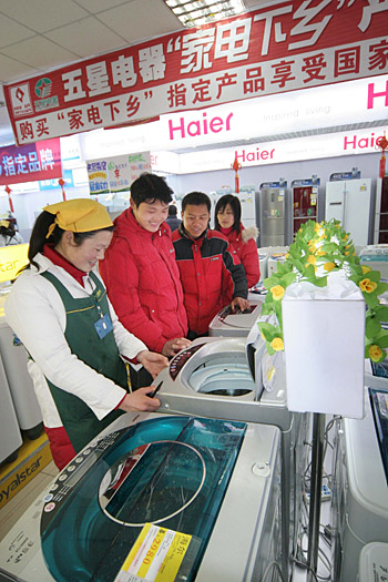 2月1日,江苏省“家电下乡”工作正式启动。江苏省赣榆县农村居民在指定销售点选购家电。