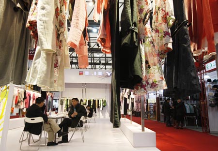 3月1日,几位客商正在一家服装展台内洽谈业务。当日,为期5天的中国华东进出口商品交易会在上海新国际博览中心拉开帷幕,本届展会展览面积10.35万平方米,设标准展位5312个,参展企业3500多家。