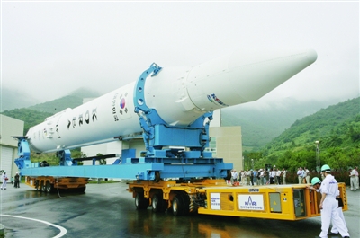 据韩国YTN电视台报道,韩国首枚运载火箭“罗老”号8月19日在预定发射的当地时间17时前6分钟时宣布中止发射。这张8月17日在韩国全罗南道高兴郡外罗老岛罗老宇航中心拍摄的资料照片显示,韩国首枚运载火箭“罗老”号被运至发射场。新华社/韩国航空宇宙研究院
