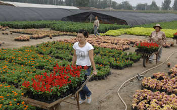 河北省廊坊市广阳区充分发挥比邻北京的区位优势,大力发展包括花卉产业在内的特色农业。“十一”国庆节来临之际,广阳区生产的花卉产品大部分销往北京。