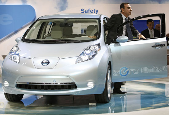 10月21日,日本第三大汽车商——日产汽车公司首席执行官卡洛斯·戈恩向媒体展示日产公司首款电动车“Leaf”。据介绍,这款将于明年秋季正式上市的电动车充电一次可行驶160公里以上,最高时速可达140公里。