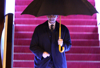 据新华社上海11月15日电 应国家主席胡锦涛邀请,美国总统奥巴马15日晚乘专机抵达上海,开始对中国进行为期4天的国事访问。