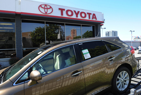 这是2010年4月6日在美国洛杉矶拍摄的一家丰田汽车专卖店门口停放的待售汽车。 美国运输部5日说,该部门正着手寻求对丰田公司处以1637.5万美元罚款,原因是对方未能就汽车油门踏板隐患迅速通知美国政府。这将是美国政府迄今对汽车制造商所处最高金额的民事罚款。