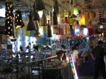 在灯具批发市场内每个摊位都有不少灯亮着,少的10多盏,多则30多盏。新华社发 |