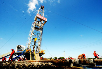 黑龙江大庆油田通过大规模推广以聚合物驱油为主导的三次采油技术,实现对油田“老区”再度开发。2002年以来已连续7年增产原油1000万吨以上,累计产油1亿多吨。本报记者 王建威/摄 |