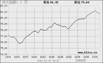北京时间12月2日晚间,反映美元强弱程度的指标——美元指数仍稳稳站在80以上。出人意料,从美第二轮量化宽松政策出台至今,美元不跌反涨,从11月初到12月初,反弹幅度接近7%。全球股市似乎也受其“牵制”,同期走出一轮下跌行情。美元此轮反弹基础是否牢固?全球市场下一步的资金流向会有何变化?