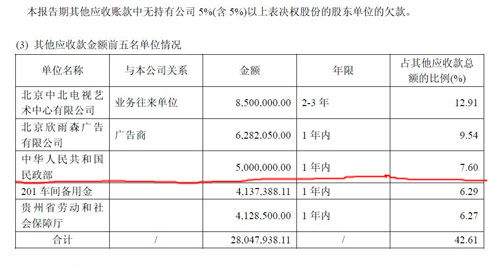 尽管贵州茅台(600519)2010年年报早已于3月21日发布,但仍被细心的网民发现,该公司年报的“其他应收账款前五名单位情况”中,中华人民共和国民政部(简称:民政部)、贵州省劳动和社会保障厅(简称:贵州社保厅)分居第二名和第四名,其中,民政部欠贵州茅台500万元,贵州社保厅欠贵州茅台412.85万元。