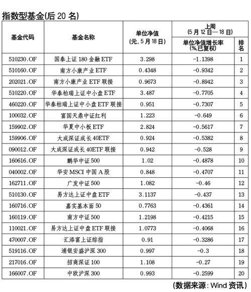 本周最差收益指数型基金排名(3月17日-23日)