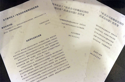 中拍协、北京市工商局、北京市地税局对新华社之前相关报道的答复函(6月9日摄)。