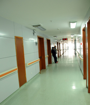 几位患者在爱德中美合资杭州爱德医院的住院区走廊上活动。 |
