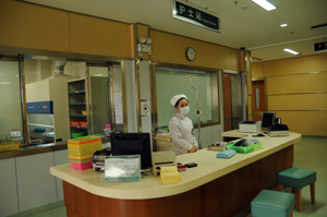中美合资杭州爱德医院的护士站前冷冷清清,没有其他公立三级医院患者人满为患的场景。 |